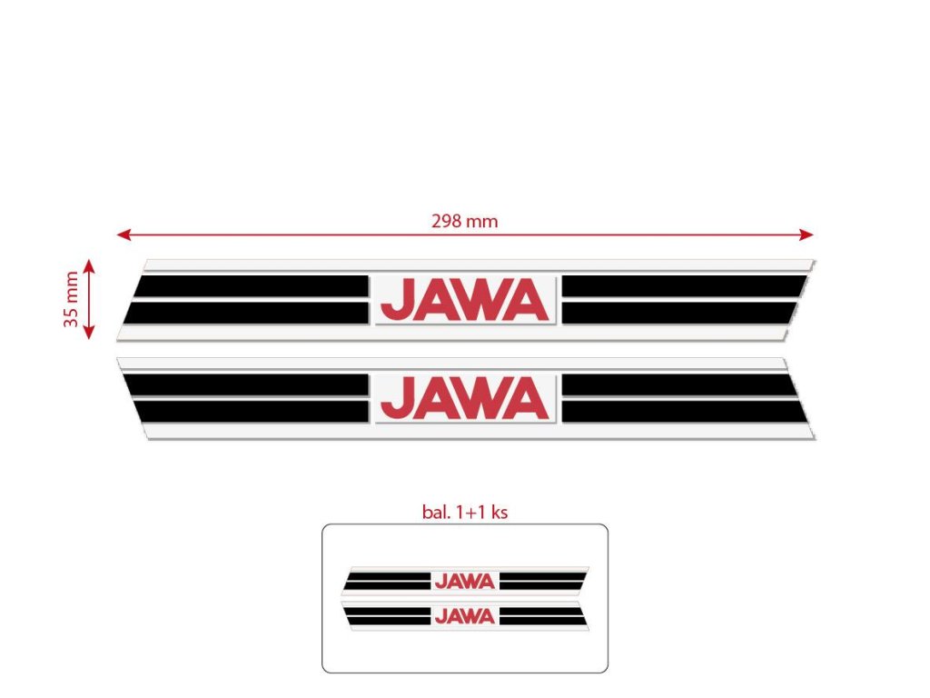 Nálepka nádrže JAWA 50 - 23 Mustang (bílé pruhy) 295x35mm 2ks *M