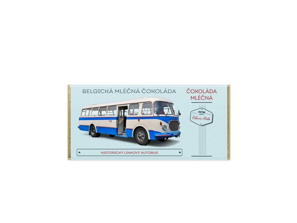 Pochutnejte si na kvalitní mléčné čokoládě a při pohledu na obrázek autobusu na přední straně stylového retro obalu si připomeňte dobu nedávno minulou. Linkový autobus Škoda 706 RTO CAR byl vyráběn v letech 1959–1973 také v Národním podniku LIAZ Rýnovice. Označení 706 RTO udává nosnost podvozku 70t poháněného motorem o šesti válcích, RTO = typ podvozku Rámový Trambusový Osobní. Tento autobus byl nejrozšířenějším typem pohybujícím se po našich silnicích. Sloužil zejména pro meziměstskou linkovou dopravu. Zajištoval dopravu snad v každém koutu naší republiky.