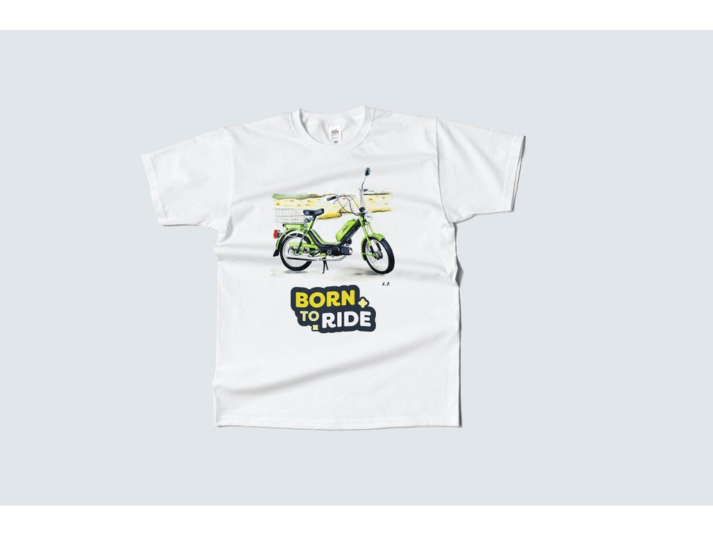 Tohle bílé tričko z naší Babetta série nese na hrudi originální kresbu Babetty 210 od ilustrátorky Lucie Vavrečkové a výrazný nápis „Born To Ride“. Ideální pro všechny, kteří berou dvoutakt jako životní styl, ne jen dopravní prostředek.